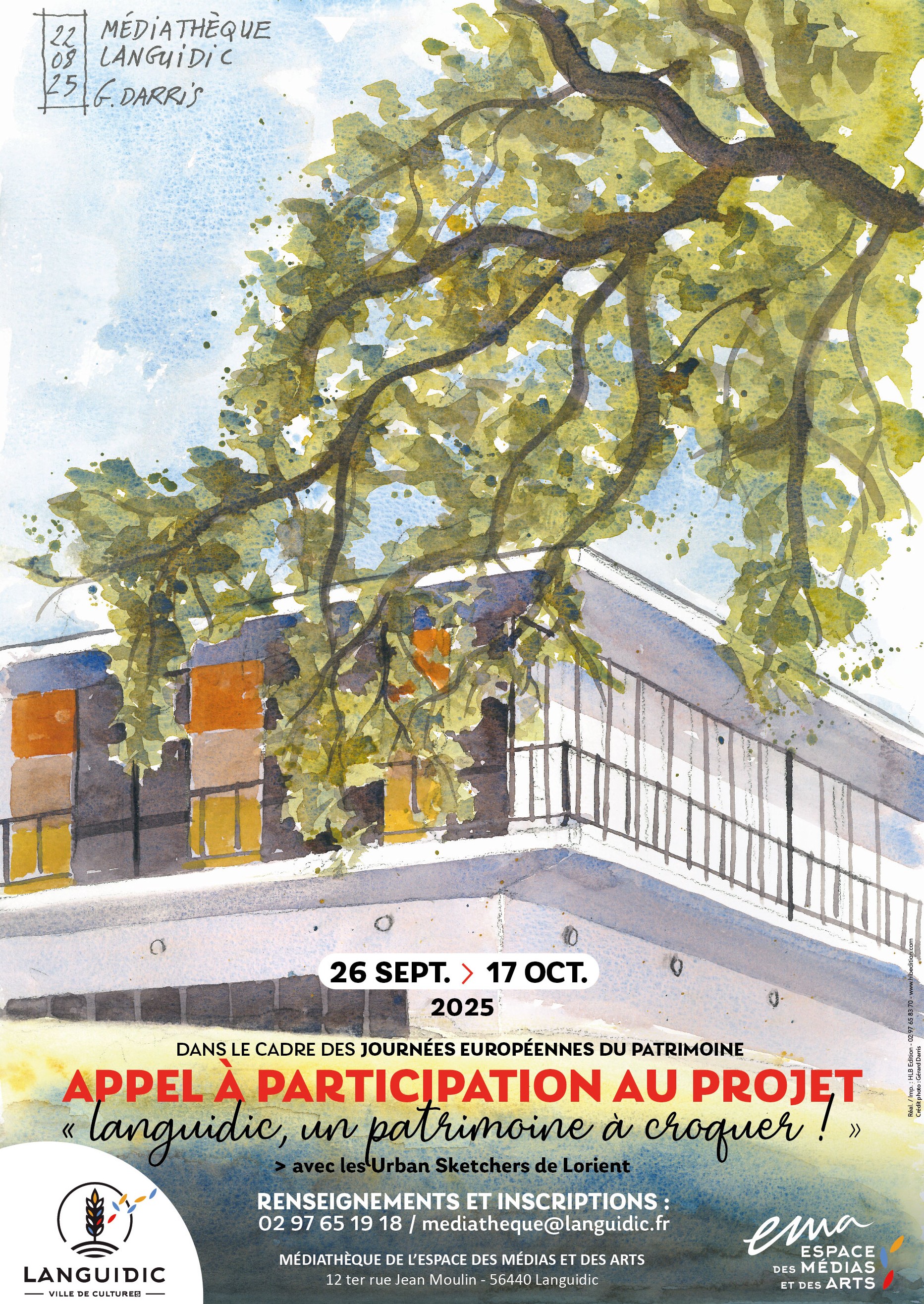 Les Urban Sketchers de Lorient, collectif de dessinateurs amateurs ou professionnels qui valorise la pratique du dessin in situ d'après l'observation directe de la vie urbaine et quotidienne, proposent aux Languidiciens qui le souhaitent de les rejoindre pour réaliser des croquis de la commune. Les oeuvres réalisées seront exposées en décembre dans le hall de l’EMA.